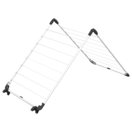 Eenmaal ingeklapt kan het droogrek eenvoudig opgeborgen worden dankzij de zwenkwieltjes, hij wordt erg dun. Half opvouwbaar, praktisch voor de kleine was.